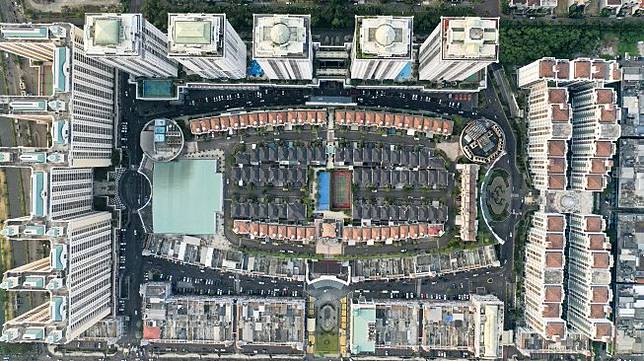 Foto aerial kolam renang dan lapangan tenis di perumahan mewah The Villas yang berada di atas Mal Of Indonesia MOI kawasan Kelapa Gading Jakarta Selasa 2 Juli 2019. 4 Fakta Perumahan Mewah di Atap Mal Thamrin City yang Viral. Kebanyakan apartemen saat ini telah dibangun di atas pusat perbelanjaan.