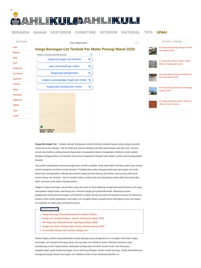 Harga Borongan Cat Tembok Per Meter Persegi Maret 2020 Ahlikuli